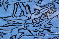 In een behoorlijke koude periode, er lag al een flinke ijs laag op de vijver, trad de dooi weer in. Op het ijs kwam door de dooi een laagje water te staan. Toch op het eind van de middag, koelde het weer behoorlijk af en ging het weer wat vriezen. het water dat op het ijs lag, bevroor weer en liet allemaal lijnen zien. De camera op statief boven het ijs geplaatst en recht naar beneden enkele foto's gemaakt. Daar het al best wel donker werd, gekozen voor een lange sluitertijd. 8 seconde. Door deze belichting, werden op de foto alle lijnen zwart, waardoor het net leek , of er een kind op het ijs allemaal lijnen had getekend.