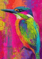 Details: ijsvogel, modern kunst, kleurrijk, schilderij ijsvogel, fel groen, fel blauw, roze, paars,…