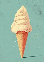 Vintage illustratie van een ijshoorntje, lichtblauwe achtergrond, retro kleuren, in de stijl van digitale kunst.