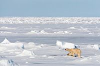 IJsbeer (Ursus maritimus) lopend op drijfijs van Spitsbergen.