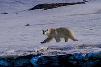 Het grootste roofdier van Spitsbergen op zoek naar een prooi. Het word steeds lastiger en ze leggen steeds grotere afstanden af.