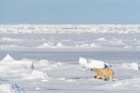 IJsbeer lopend op het uitgestrekte pakijs ten noorden van Spitsbergen.