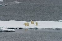 Wanneer je richting Spitsbergen vaart kom je op een gegeven moment de ijsschotsen tegen. Vanaf dat moment is er kans op een hele grote jager. De IJsbeer. Wanneer je dan een moeder met 2 jongen tegenkomt...