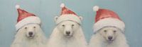 Drie lieve IJsbeertjes klaar met Kerstmutsen aan. De pastelkleuren en het lage contrast zorgen voor een serene uitstraling. Breng de gezelligheid van kerst in jouw huis met dit charmante werk!