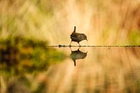Dit winterkoninkje liep te ijsberen, zo schattig! En het diertje wordt ook nog eens mooi weerspiegeld.