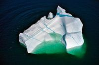 Een IJsberg voor de kust van Newfoundland. Deze ijsbergen bevatten ijs van meer dan 10.000 oud sneeuw en water. Ze breken in het voorjaar en de zomer af aan de kust van Groenland en doen er vervolgens een jaar over om de kust van Newfoundland te bereiken. Omdat maar 10% boven het water uitsteekt is het van boven af goed te zien wat er nog onderwater aan ijs bevind.