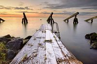Ijsbrekers Marken bij zonsopkomst met wat rijp op de steiger.