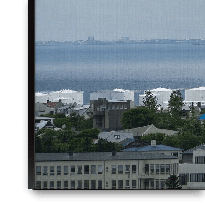Koop de foto IJsland - Hallgrimskirkja kerk in de stad Reykjavik van bovenaf van adventure-photos op canvas, aluminium dibond, (ingelijste) fotoprint, behang en ArtFrame, op maat geprint in Fine-Art kwaliteit.