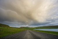 IJsland - Regenboog over eindeloze straat naast een meer bij zonsopgang