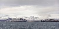 het grootste meer van IJsland (Thingvallavatn) in het vroege voorjaar. Besneeuwde toppen in de verte, omfloerste zon aan de hemel. je blijft je verbazen. Wat een land!