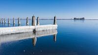 Winter in Nederland, langs de waterkant levert dat mooie beelden op. Een weerspiegeling in het ijs en een mooie blauwe kleur in het landschap.