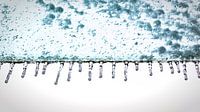 Een rijtje ijspegels aan de rand van het dak van een tramhokje. Sneeuw ligt nog op het doorzichtige dak. Dat smolt langzaam door de zon, en dat smeltwater bevroor weer toen de zon verdween.