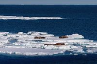 Wanneer je met een schip rondom Spitsbergen vaart, kom je regelmatig ijsplaten tegen drijvend in de zee. Wanneer je geluk hebt kom je ook nog wilde dieren tegen op deze ijsplaten zoals deze Walrussen.
