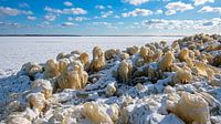 IJssculpturen aan het Lauwersmeer in Friesland in de winter in Nederland