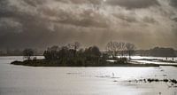 IJssel herfst ochtendlicht met hoge waterstand in de uiterwaarden bij Zwolle en Hattem na langdurige regen bovenstrooms.