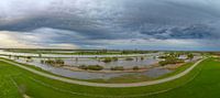 Landschappelijke luchtfoto langs de overstroomde IJssel bij het dorp Zalk in Overijssel. De uiterwaarden zijn overstroomd na een periode van hevige regen stroomopwaarts in het voorjaar.