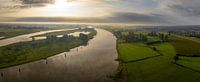 IJssel zonsopgang panoramisch landschapsgezicht tijdens een late zomerochtend in de buurt van Zwolle. De rivier op de grens van Overijssel en Gelderland kronkelt in de verte.