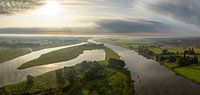 IJssel zonsopgang panoramisch landschapsgezicht tijdens een late zomerochtend in de buurt van Zwolle. De rivier op de grens van Overijssel en Gelderland kronkelt in de verte.