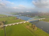 IJsselbrug of Katerveerbrug over de rivier de IJssel bij de stad Zwolle in Overijssel, Nederland. Vanuit een drone gezien.