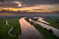 De IJssel bij Zwolle tijdens een mooie zomerse zonsondergang met wolken in de kleurrijke lucht boven de rivier.