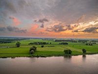 De IJssel bij Zwolle tijdens een mooie zomerse zonsondergang met wolken in de kleurrijke lucht boven de rivier.