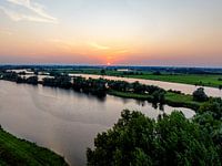 De IJssel bij Zwolle tijdens een mooie zomerse zonsondergang met wolken in de kleurrijke lucht boven de rivier.