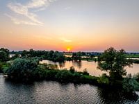 De IJssel bij Zwolle tijdens een mooie zomerse zonsondergang met wolken in de kleurrijke lucht boven de rivier.
