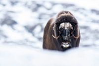 Portret van muskusos in de sneeuw