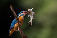 Een opname van een ijsvogel met gevangen vis. je zie de waterdruppels nog in de lucht! Ik heb ongeveer 7 uur in een tent gezeten en heb de vogel maar 5 minuten gezien.