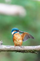 IJsvogel (Alcedo atthis) bij verenkleedverzorging.