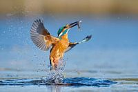 In een flits duikt de ijsvogel in het water, een fractie van een seconde later komt hij er weer uit, in zijn snavel een gevangen visje. In een nog kortere flits leg ik hem vast op de gevoelige digitale plaat.