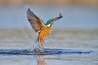 In een flits duikt de ijsvogel in het water, een fractie van een seconde later komt hij er weer uit, in zijn snavel een gevangen visje. In een nog kortere flits leg ik hem vast op de gevoelige digitale plaat.