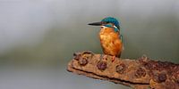 Met zijn contrasterende kleuren is de ijsvogel een van de mooiste vogels van ons land. Dit roestige stuk industrieel ijzer die hij als uitkijkpost heeft gekozen om een visje vanaf te verschalken, laten zijn prachtige kleuren nog meer spreken.