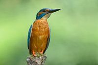 De IJsvogel lijkt als een standbeeld op de stok te staan. Op nog géén 2 meter zat ie daar ineens. pal voor m'n lens. Dan gaat je hart wel even sneller van kloppen.