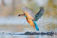 Een ijsvogel vangt zijn eigen lichaamsgewicht (gemiddeld zo'n 43 gram) aan vis per dag. De wijze waarop dit gebeurt is werkelijk schitterend om te zien. In 2015 heb ik het gehele jaar besteed aan de techniek om dit prachtige schouwspel vast te leggen. Met de opgedane ervaring heb ik dit vrouwtje vast kunnen leggen in een mooie setting met een mooie zachte achtergrond. Op 24 megapixels, voor een scherpe afdruk op elk formaat.