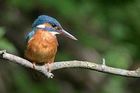 De IJsvogel doet het goed in Amsterdam. Er worden er steeds meer gespot. Op dit werk is de IJsvogel in close-up te zien, zittend op een overhellende tak in de heemtuin de Wiedijk in Amsterdam-West. Het beeld is mooi scherp waardoor de prachtige vogel goed tot zijn recht komt. De achtergrond is van een groen bokeh waardoor een oranje met blauw gekleurde vogel nog verder wordt geaccentueerd en haast van het beeld af spat.