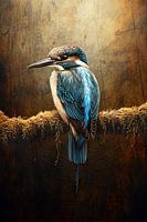 Een statige ijsvogel, stil zittend op een met mos begroeide tak, gevangen in een moment van serene rust. De diepe blauwe en turquoise tinten van het verenkleed contrasteren prachtig met de warme, aardse achtergrond. Deze fine-art compositie ademt stilte en verwondering, alsof de tijd even stilstaat. Perfect voor wie houdt van natuur met…