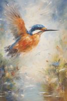 Dit werk uit de serie Faded Dreams toont een ijsvogel in vlucht. Het kleurenpalet van het kunstwerk is ingetogen maar levendig en geeft een dromerige vintage uitstraling aan uw interieur!