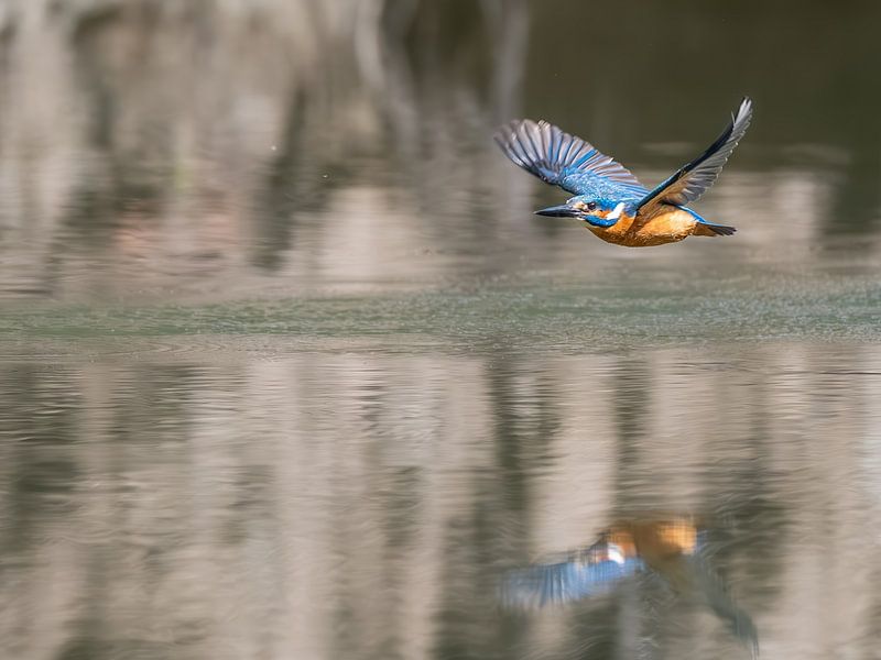 Deze ijsvogel vliegt over de wateren rond Utrecht