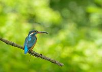Terwijl de zon behoorlijk scheen op de achtergrond zat deze IJsvogel rustig in de schaduw te wachten totdat hij de nestholte in kon gaan om zijn jongen te voeren met een klein visje.