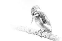 Mooie ijsvogel op tak. Uitgevoerd in zwart-wit / highkey.