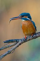 Dit ijsvogelvrouwtje heeft net een vis gevangen.