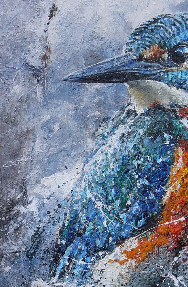 Schilderij van een IJsvogel, gemaakt door Peter van Loenhout. Figuratief, impressionistisch, modern.