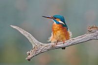 Als een Marylin Monroe met een opgewaaide rok zit dit ijsvogelvrouwtje met haar veertjes in de wind.