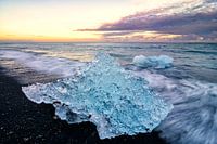 Aangespoelde smeltende ijsberg bij het Jokulsarlon ijsmeer in IJsland.