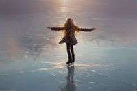 Dit werk vangt het gevoel van ijsvrij in zijn puurste vorm: een meisje dat met open armen over het ijs glijdt, los van tijd, verplichtingen en alles wat even niet hoeft. Het moment ademt vrijheid, speelsheid en die typische wintervreugde die veel mensen herkennen uit hun jeugd, wanneer school plaatsmaakte voor schaatsen zodra het ijs…