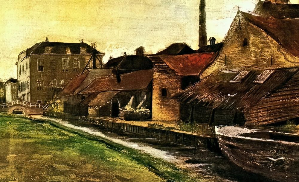 De "IJzermolen in Den Haag" van Vincent van Gogh is een krachtige weergave van de late 19e-eeuwse industrialisatie en het stadsleven. Dit schilderij uit 1882, dat in de beginjaren van Van Goghs carrière werd gemaakt, laat zijn obsessie zien voor het gebruik van levendige kleuren en expressieve penseelstreken om de essentie van gewone scènes vast te leggen. Van Gogh legde een scène van werk en industrie vast in dit schilderij, met de massieve structuur van een ijzermolen in het middelpunt.decor.