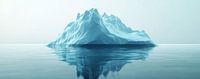 Dit kunstwerk toont een indrukwekkende ijsberg die op majestueuze wijze boven het stille, glinsterende water uitsteekt.