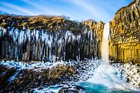 Bij deze waterval heersen ijzige omstandigheden. Ijspegels, bevroren water en ijzige wind pauzeren hier en verrijken deze compositie.