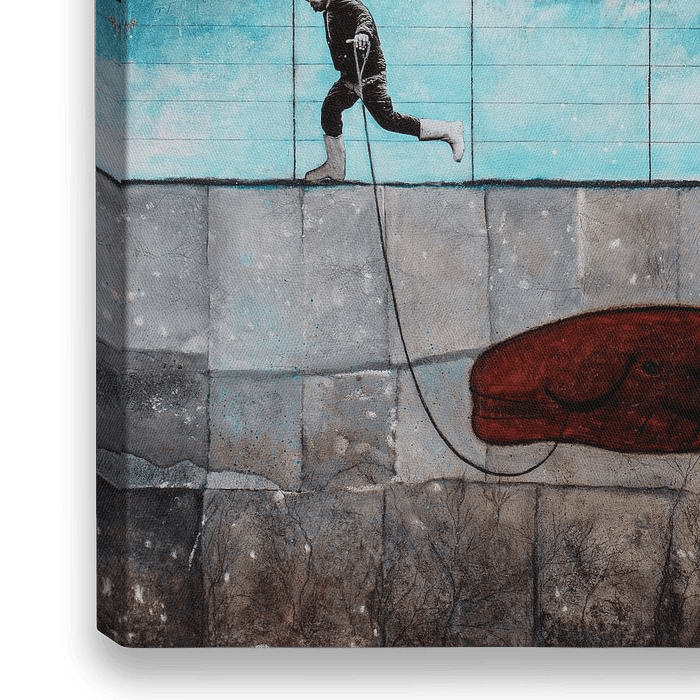 Een jongen met een walvis. Wie is wiens denkbeeldige vriend? Mixed media en assemblage op papier. Dit werk hoort bij de serie 'collages'. Ik verzamel originele foto's en divers papier uit tijdschriften voor mijn kunstwerken. Deze bewerk ik met acryl verf, houtskool, inkt, balpen en potlood . Ik heb altijd een grote voorliefde gehad…